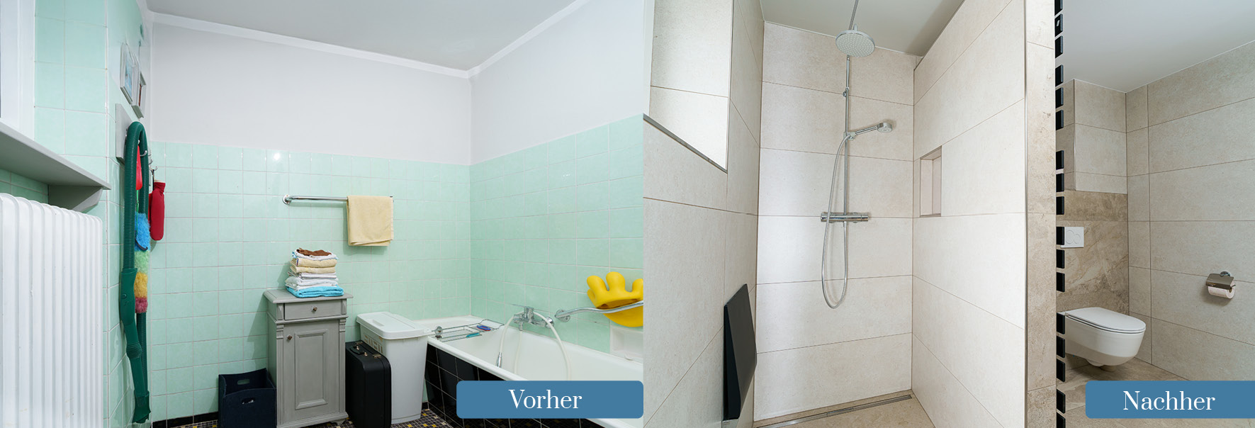 Hier finden Sie einige Beispiele zur Badsanierung. Klicken Sie sich durch die Vorher-Nachher-Fotos und holen Sie sich Ideen für Ihre Badsanierung.